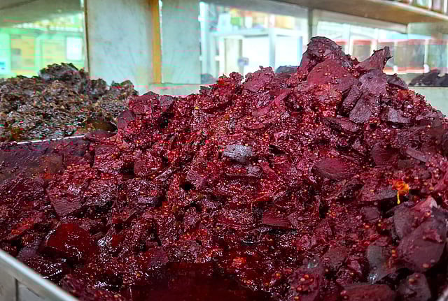 Beetroot pickles at this shop offer a distinct flavor, standing out from the rest with their rich colour and unique taste. Photo/Umer Farooq
