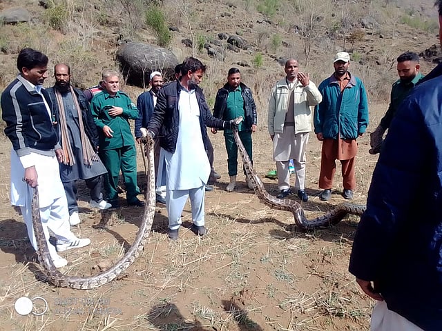 Naeem Iftikhar Dar, Director of the Wildlife Department and Fisheries, stated that members of the local community discovered Indian Rock Pythons near the Poonch River in Poonch River National Park. They promptly handed over the captured pythons to the wildlife department staff who relocated them to a habitat away from human habitation.
