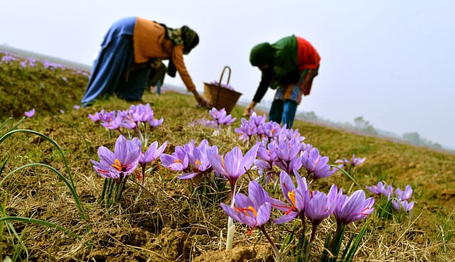 “Once dust pollution from cement industries settles on top of our saffron harvest, the sensitive crop is destroyed,” notes Abdul Majeed Wani, 67, president of the Kashmir Saffron Growers Association.