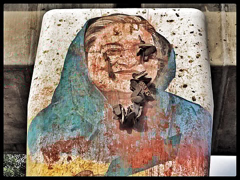 In Dhaka’s Bijoy Sarani, a massive mural of Mujib called “Mritunjay,” inaugurated by Hasina last November, was demolished by protesters, who saw the artwork as a symbol of the oppressive regime they were fighting to overthrow.