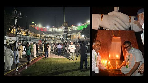 People sat down in the VIP enclosure with their placards and candles. The media teams set up cameras and tripods in front. A few feet away, the steel gate with spikes monitored by uniformed rangers remained firmly shut. The similarly locked Indian gate a couple of feet away was visible through the bars.